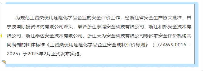 《工貿(mào)類使用危險(xiǎn)化學(xué)品企業(yè)安全現(xiàn)狀評(píng)價(jià)導(dǎo)則》(T/ZAWS 0016—2025)